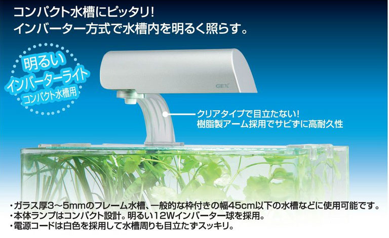 曲げガラス水槽にもぴったりのフォルム。