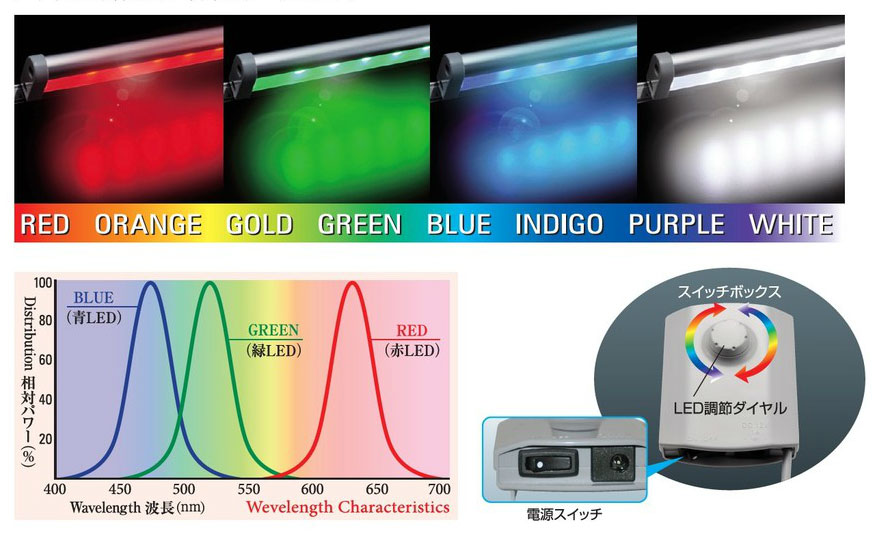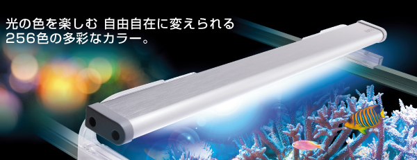 ・R(赤)・G(緑)・B(青)のLEDで、水草やサンゴなどの生体に合わせた光を供給。