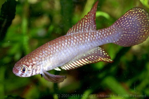 | 繁殖難易度 | 普通。年魚ということで休眠期間が必要なことや産卵床を用意するなど、基本さえ押さえれば最も繁殖の容易な種。本種は年魚のためペアを作れば産卵させること自体は容易だ。まず採卵。自然の環境下では泥に深く潜り産卵することで知られ、水槽内でもピートの中に潜る。よく煮たピートを水槽に入れて卵が産み付けられるのを待ちます。潜る関係でピートは5cm程度の厚さが必要になる。次に休眠保管。一カ月程したらピートごと卵を取り出しビニールに入れて多少湿ったくらいの状態で、25℃前後で約2〜3カ月ほど保管します。そして卵に黒い目が見えたら水に浸ける。本種の卵は比較的大きく、肉眼でもしっかりと確認できます。稚魚はブラインシュリンプで飼育するのがよい。 | |