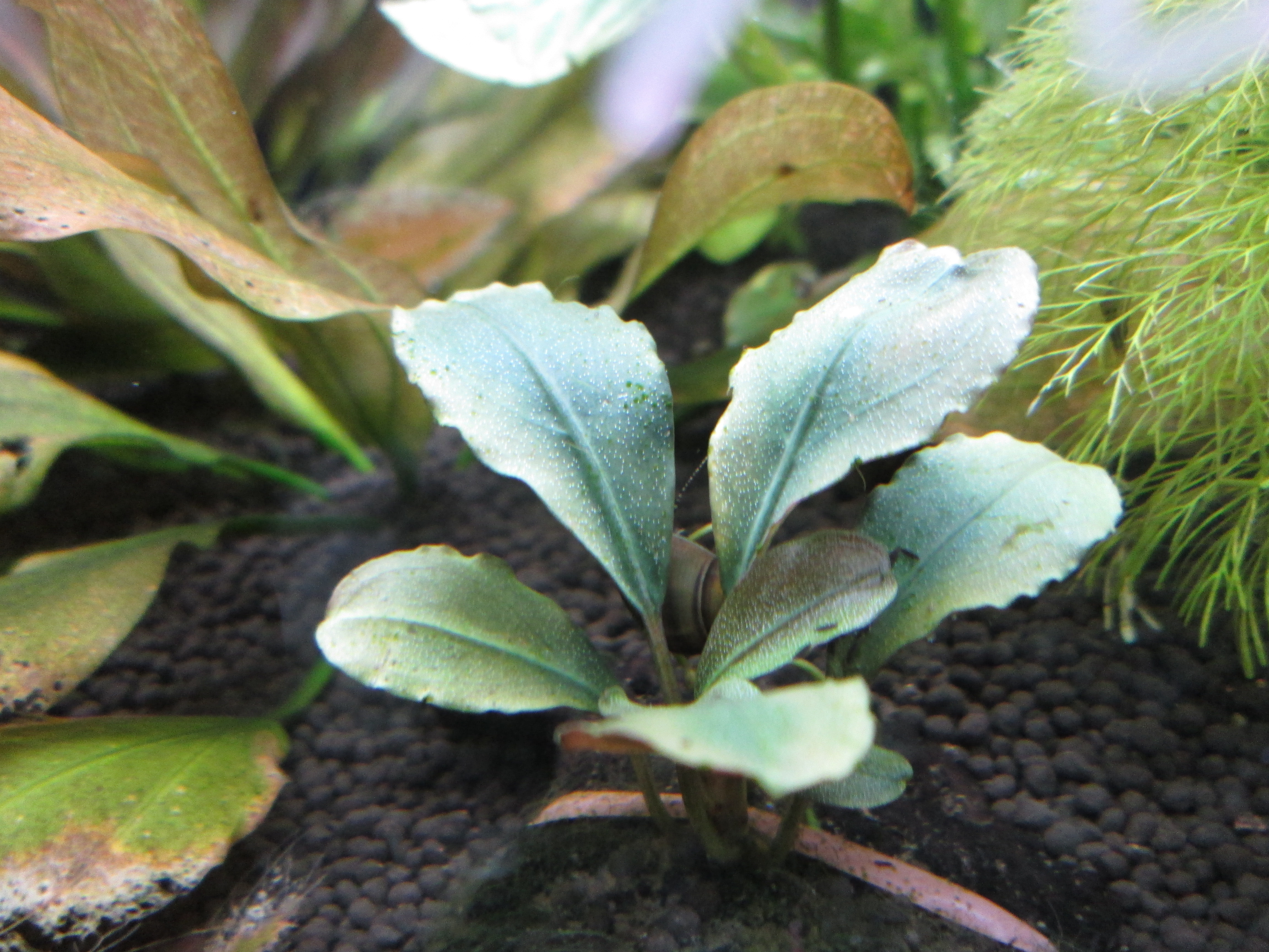 ブセファランドラは全般的に水中での維持がしやすく、アヌビアスのように流木や岩に活着させることができる。