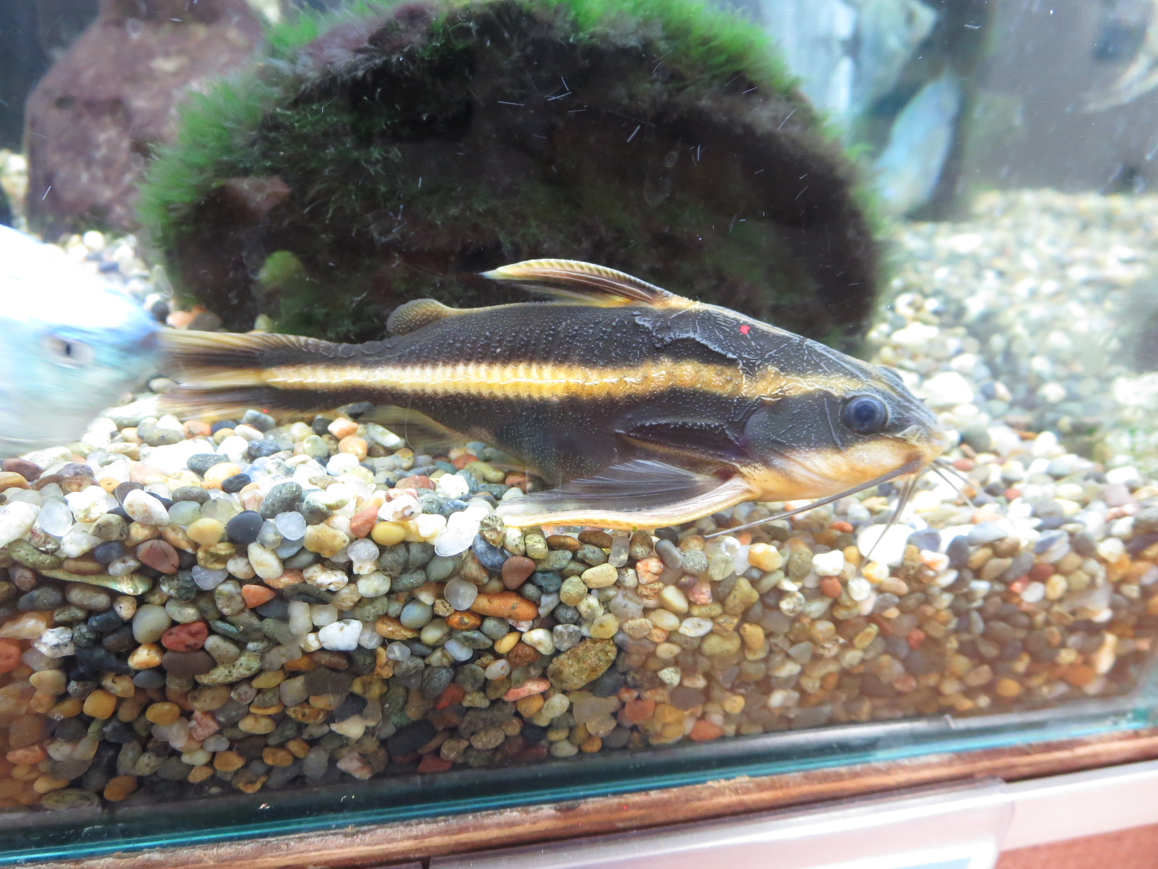 幼魚のうちは体色が濃いブラックのため、ストライプ柄が目立つが、成熟するにつれてチョコレート色に変化する。細い体も成熟するにつれてナマズらしくボッテリとしたフォルムになる。