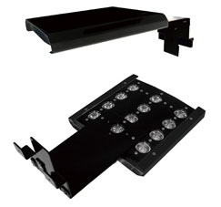 - LEDチップは、高性能でLEDシェアNo.1のUSA・Cree社製パワーLED(ホワイト)を12チップ搭載し、水槽 用に開発した広角レンズを各チップごとに装備。水槽内を明るく均一に照らします。