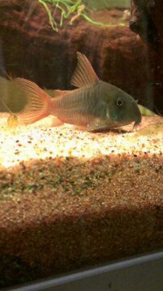 コリドラスによくある赤茶色の体色をしているが、飼い込むとグレーからブルーへ綺麗なグラデーションを見せてくれる種。珍しさからハイフィンタイプが人気。