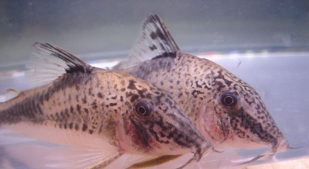 体側に個体によって異なるシミのような黒い模様が入るロングノーズタイプのコリドラス。
