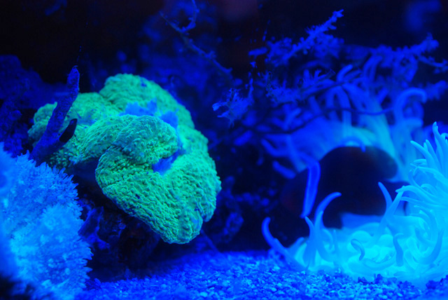 オオバコサンゴなどの蛍光色素に最も反応するように開発したブルーLEDユニットを世界初使用。ブルーLEDの光により、茶 褐色のサンゴや色彩の悪いサンゴの色上げが出来ます。又、錆びに強い材質を厳選して製作しております。