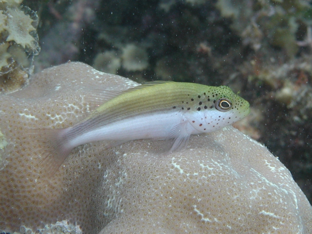 | 英名 | Black-sided hawkfish、Freckled Hawkfish | |