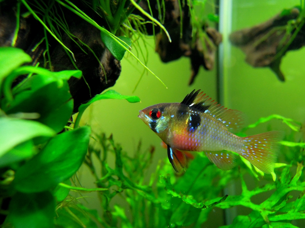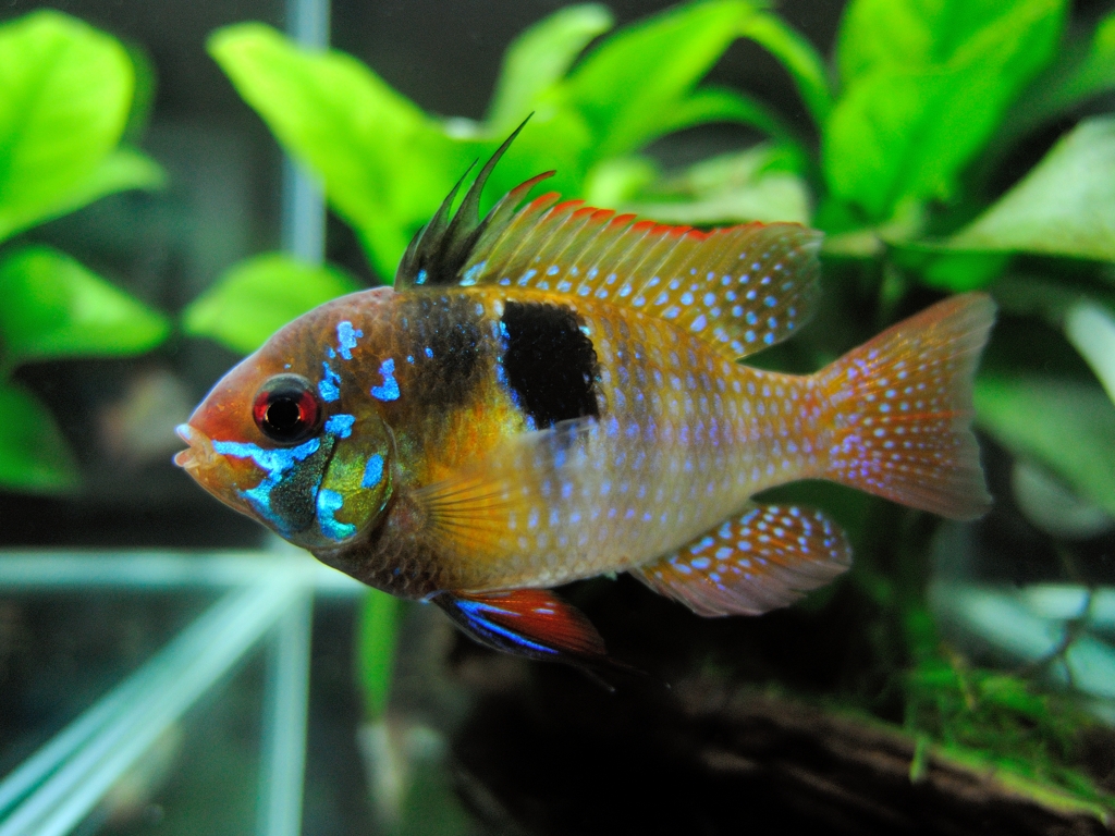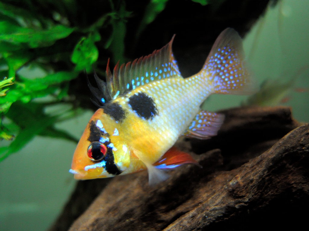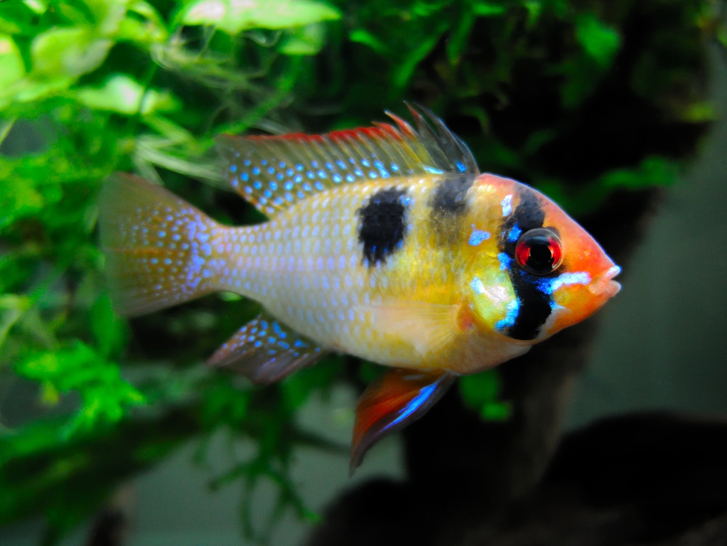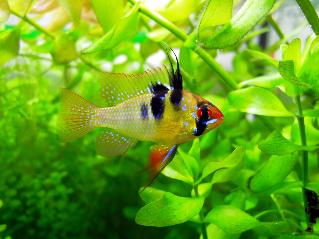 | 英名 | German Blue Ram、Balloon Ram、Butterfly Cichlid、Golden Ram、Singapore Ram、Blue Ram、Ram Cichlid | |