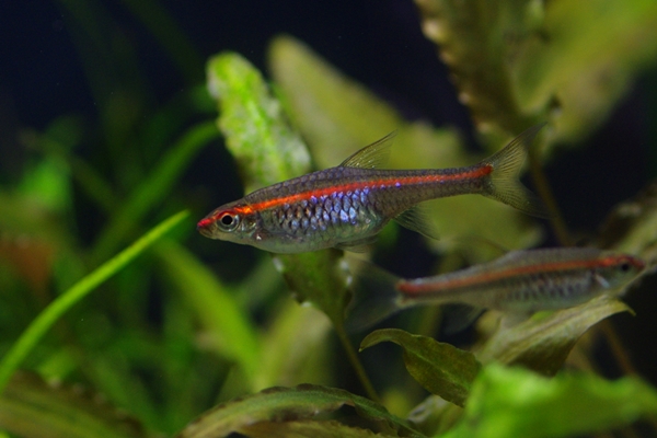 弱酸性の水で飼い込むとレッドのラインが強く出て美しい。細長く透明感があり小型カラシンやコリドラスなどと混泳させると面白い。