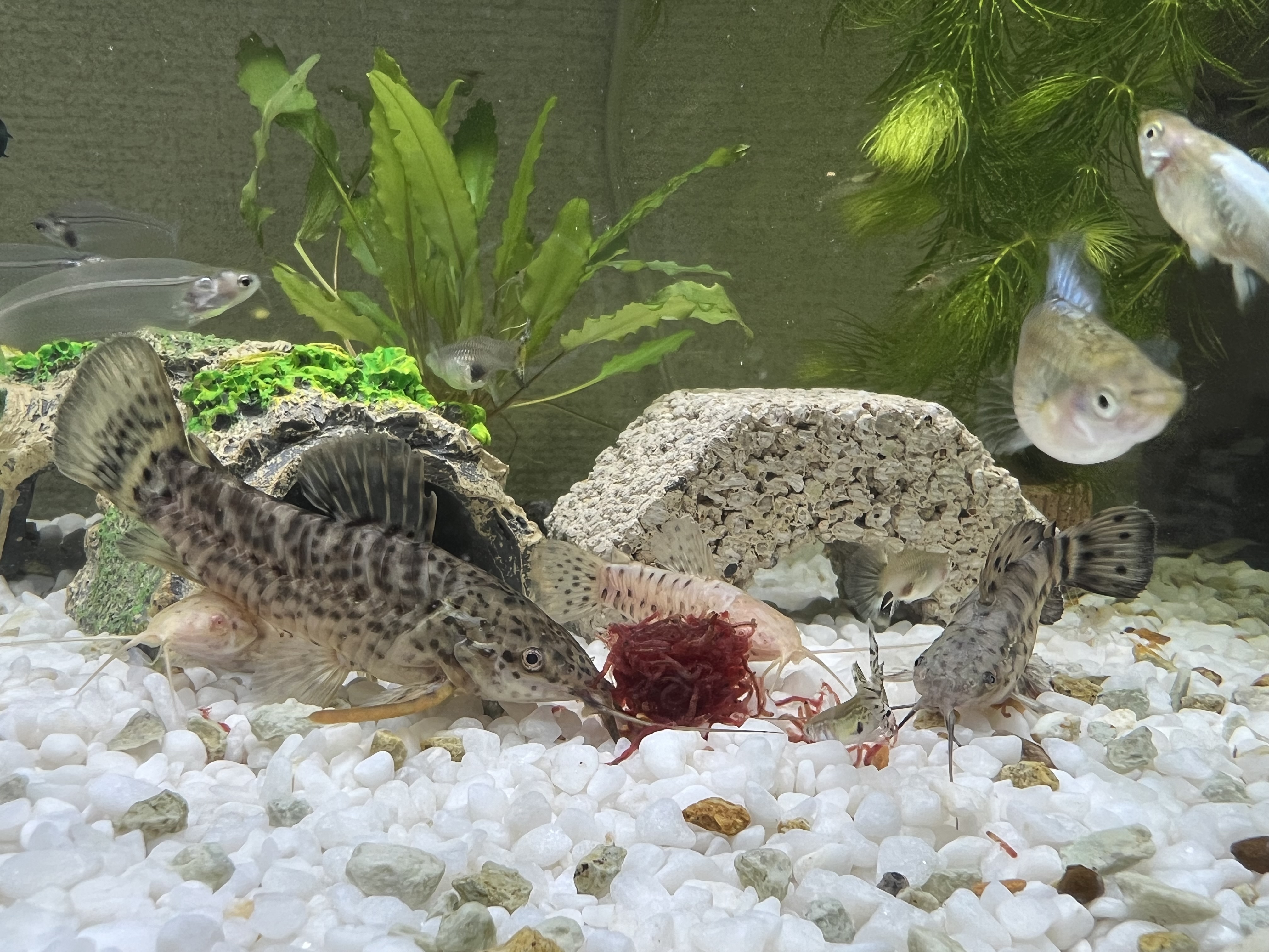 推奨されるアクセサリなど底床を口でさらうようにエサを探すので細かな砂状の底床が望ましい。臆病なので隠れ家となる土管?がお奨め。ほかにも隠れられる大きな流木水草など。また適度な水流を好むので、水流を生むような水中ポンプろ過器?