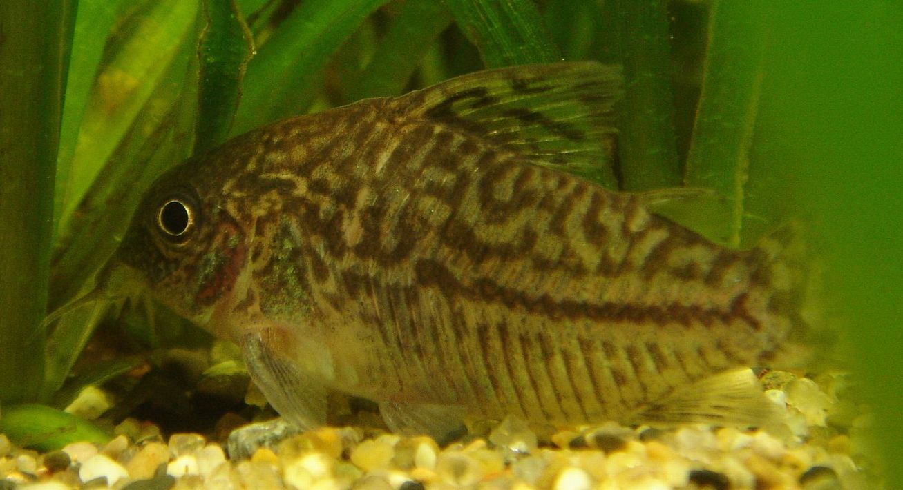 別命ネットワーク・コリドラスと呼ばれ、迷路のような茶色の模様が特徴だ。飼い込むとエラの後ろが黄色やオレンジに色づく。同じネットワーク模様を持つものにコリドラス・レティクラートゥスという種もいる。