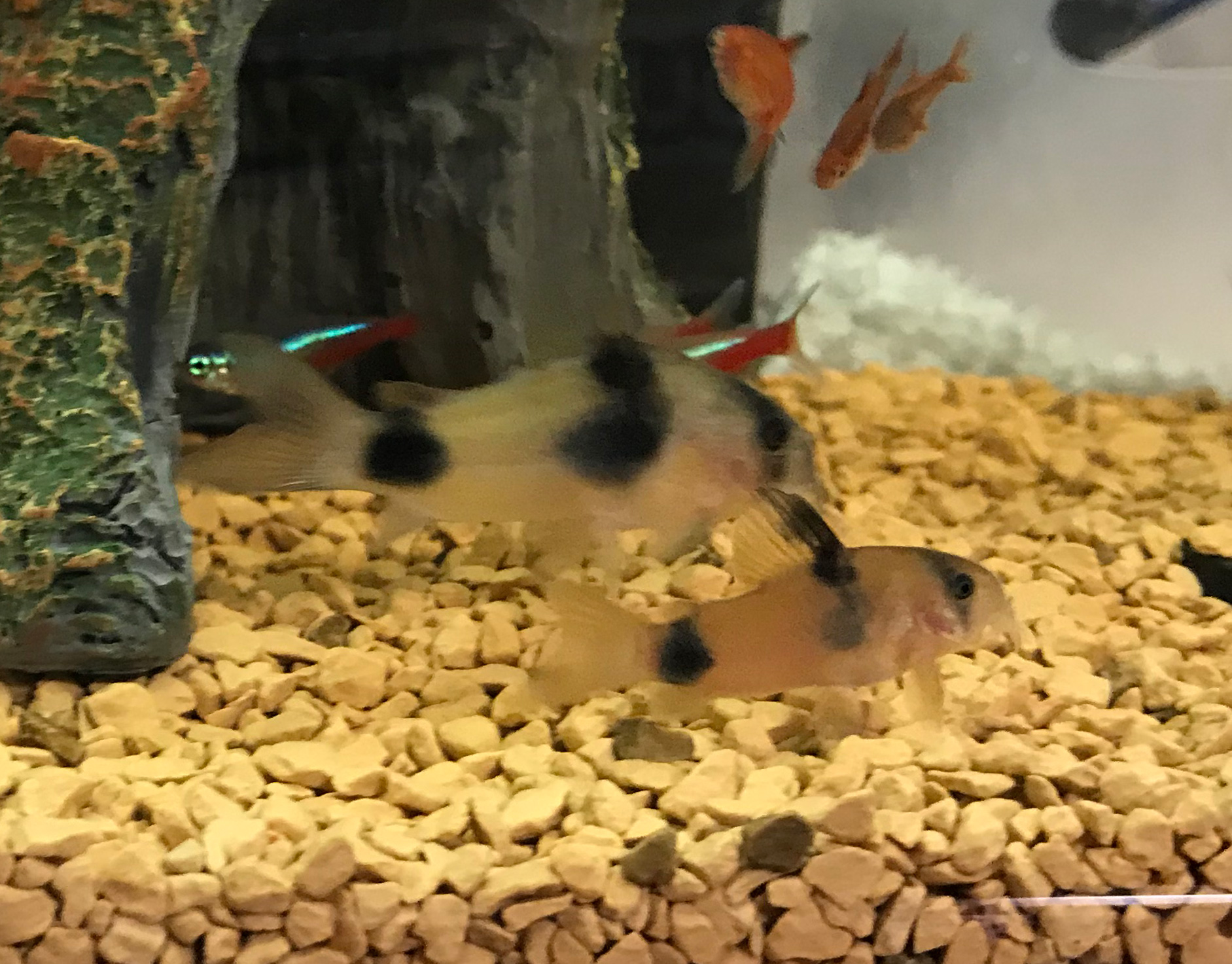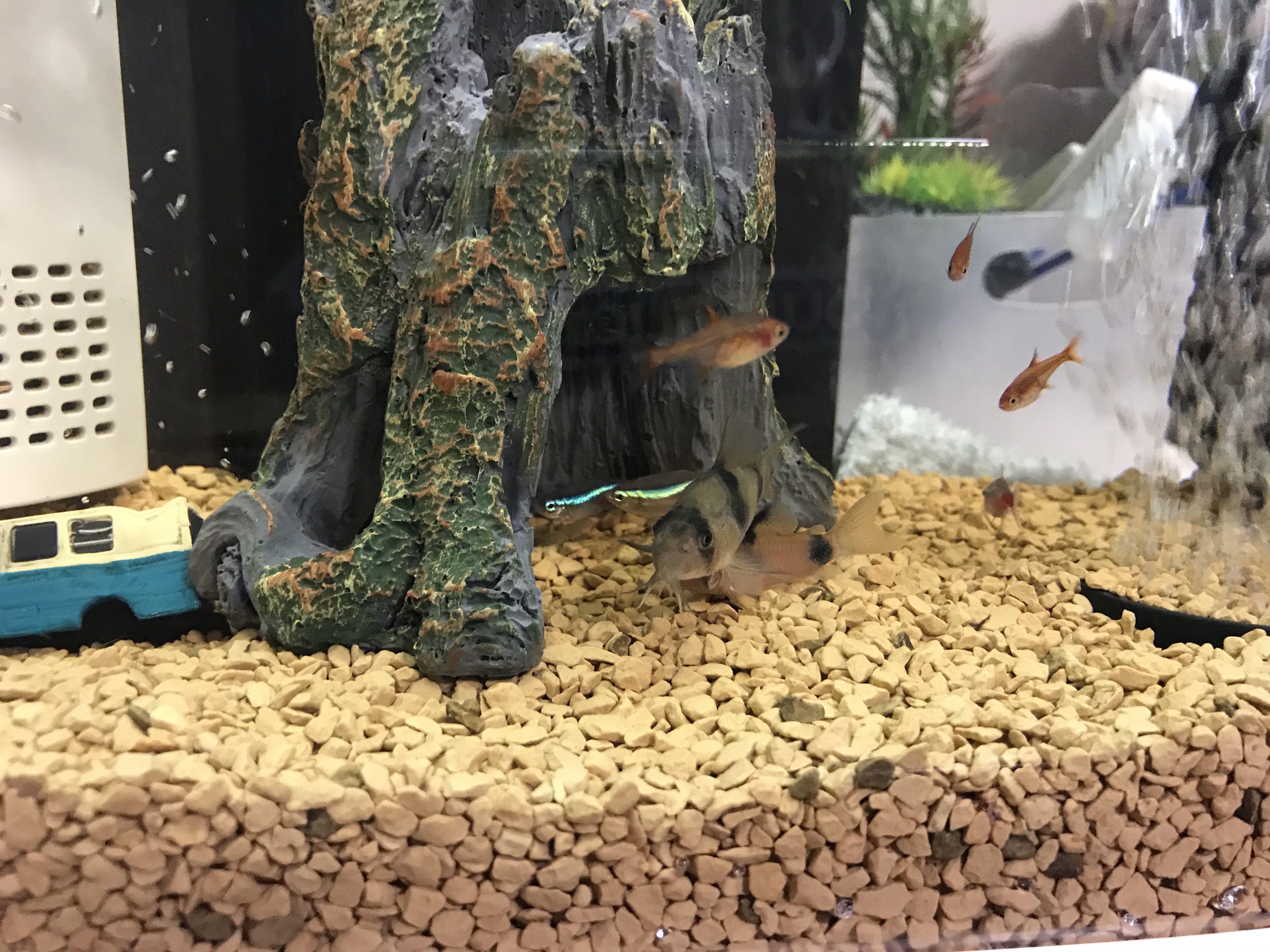 推奨されるアクセサリなど底床を口でさらうようにエサを探すので細かな砂状の底床が望ましい。臆病なので隠れ家となる土管?がお奨め。ほかにも隠れられる大きな流木水草など。また適度な水流を好むので、水流を生むような水中ポンプろ過器?