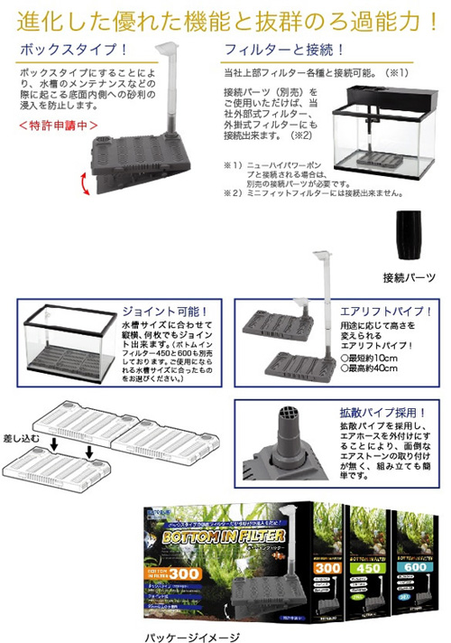 ■水槽のメンテナンスなどの際に起こる砂利の侵入を防止するボックスタイプの底面フィルターが新登場!