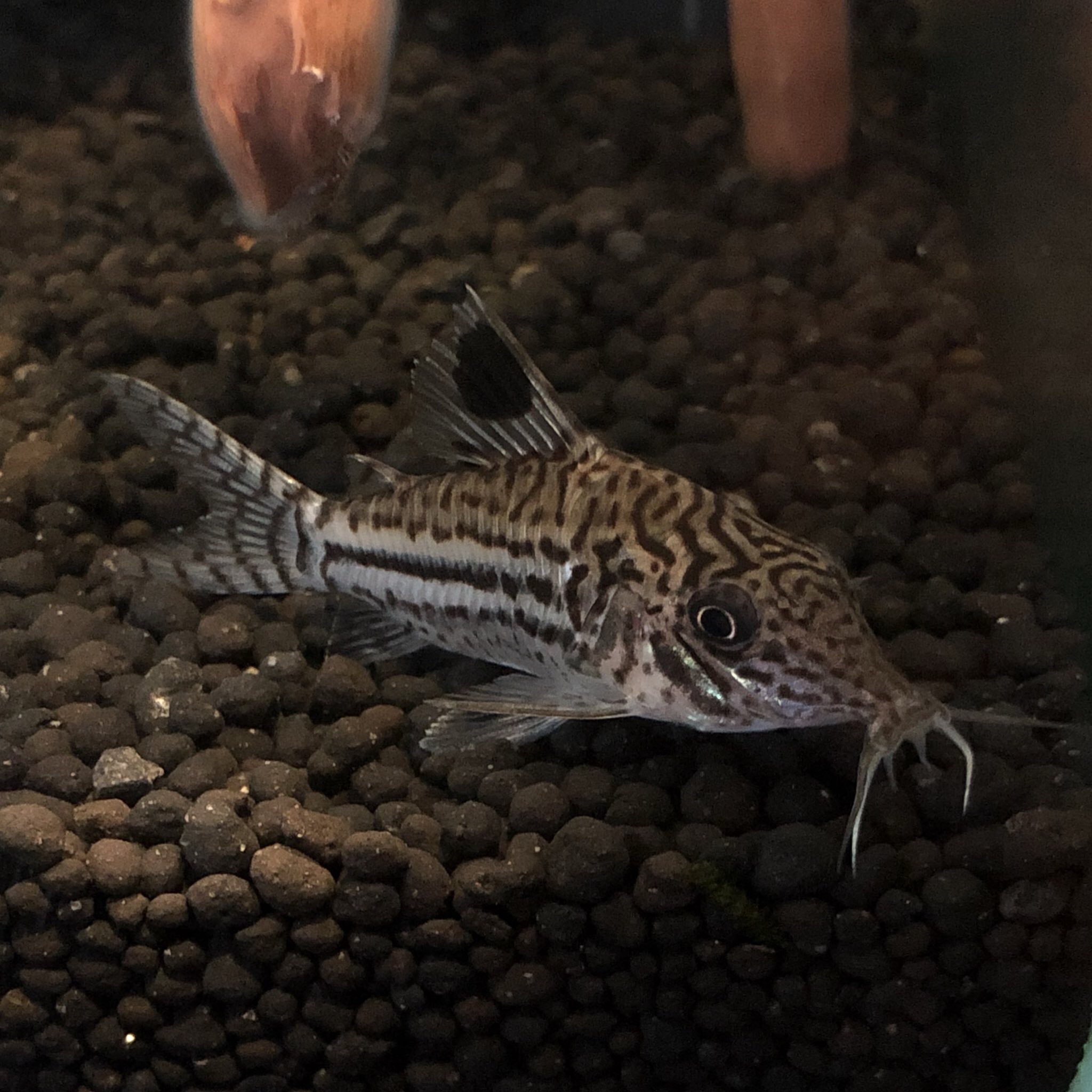 胡椒模様と、背ビレの黒いスポット模様など、幼魚の頃はコリドラス・トリリネアートゥスやコリドラス・ジュリィーと似た雰囲気を持っている。