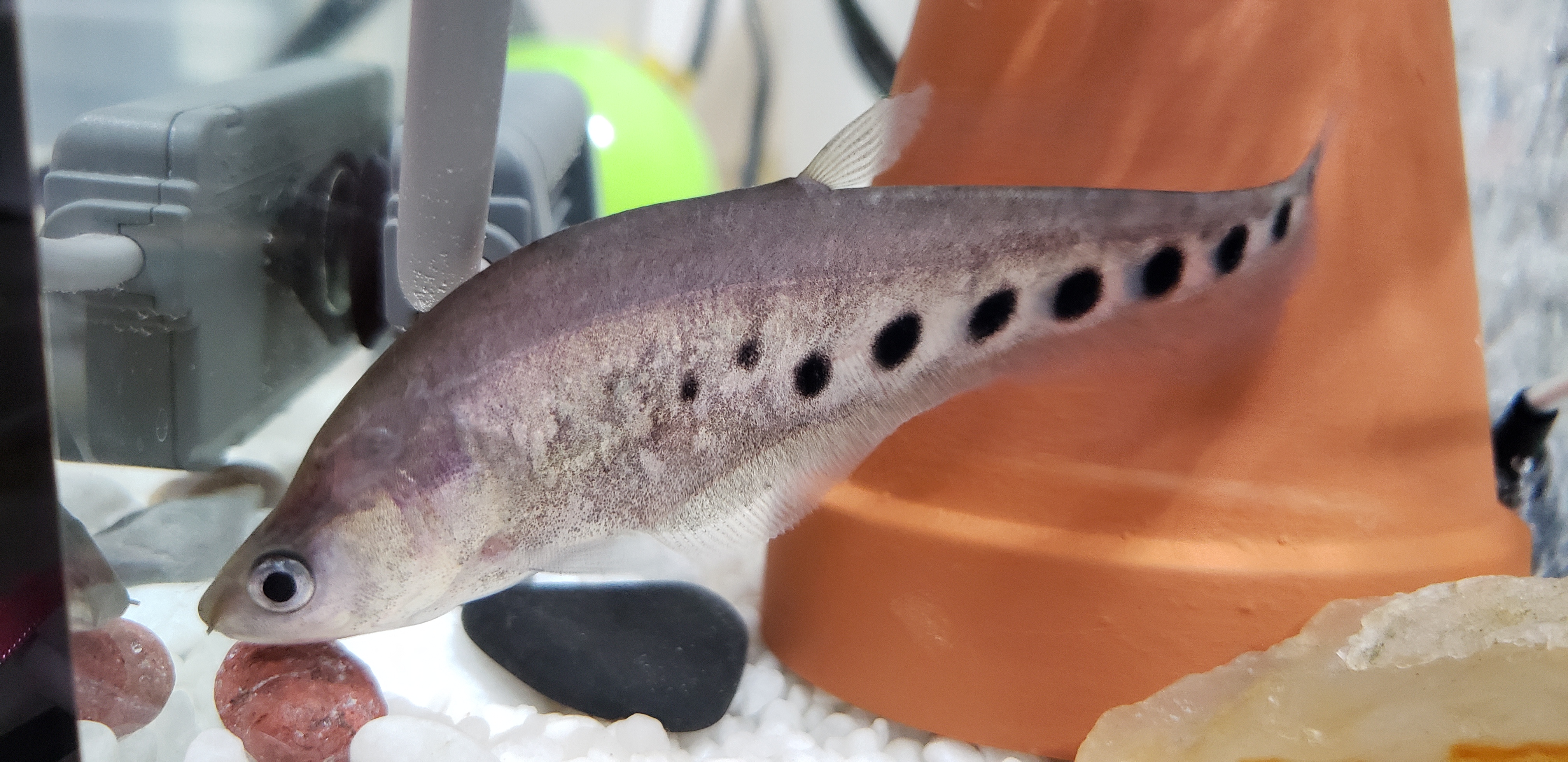 幼魚から今では35㎝を越える大きさになった。が、生餌以外は一切興味を示してくれません。