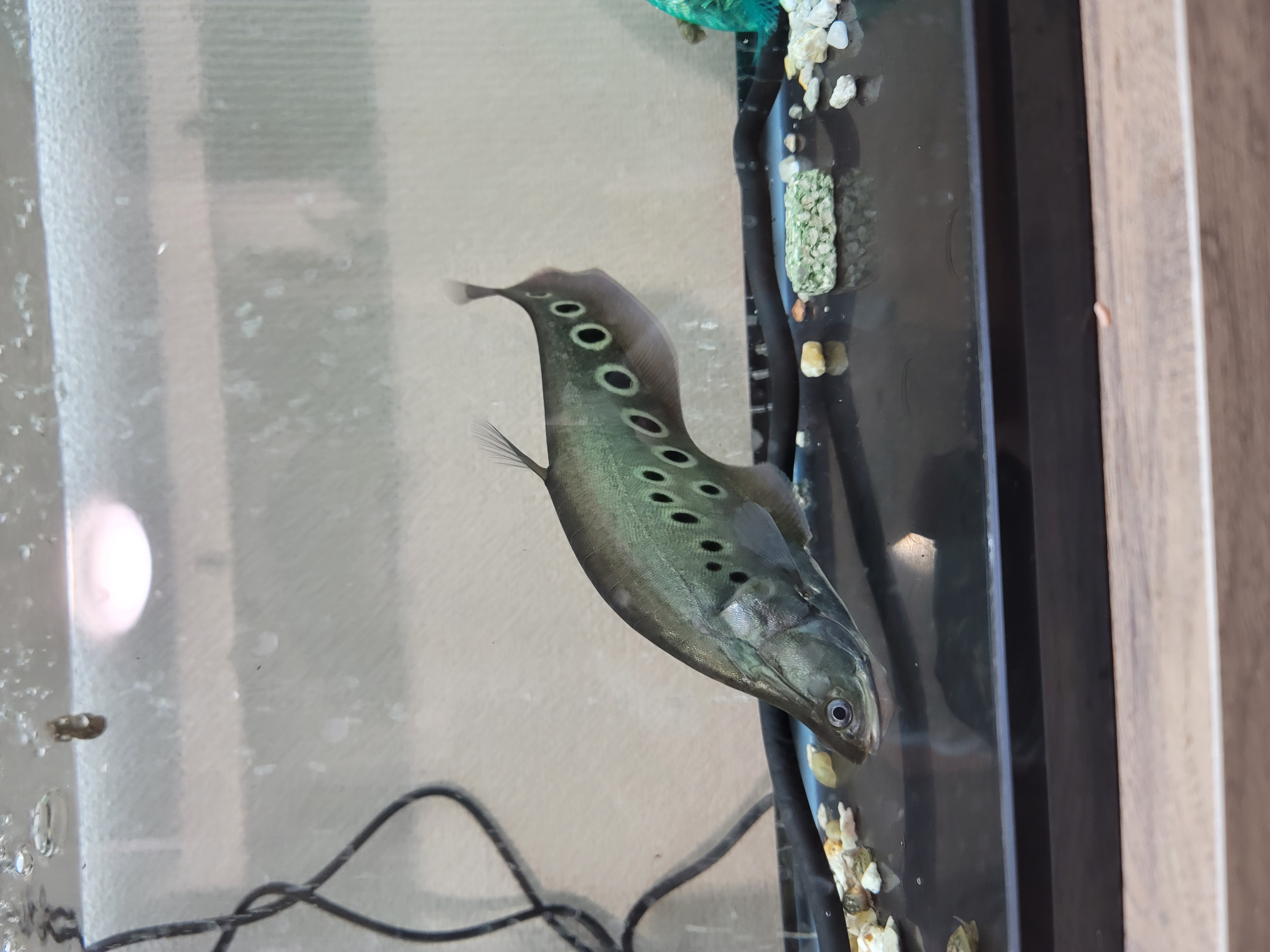 基本的に混泳は難しい種だと思った。丸呑みをする、鱗を舐められ感染症で死ぬ等のありがちな混泳失敗は経験した事はあるが、ついばむ様に混泳魚を食べようとする種は初めてだった。